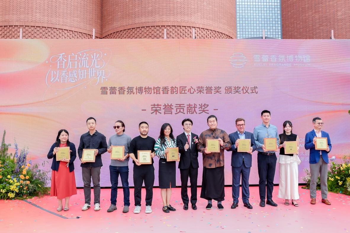 隨后舉行的“香韻匠心榮譽(yù)獎(jiǎng)”頒獎(jiǎng)儀式,分別向在博物館建設(shè)過(guò)程中作出卓越貢獻(xiàn)的設(shè)計(jì)、建設(shè)和行業(yè)合作單位頒發(fā)榮譽(yù)獎(jiǎng)項(xiàng)。獲獎(jiǎng)單位包括華匯、立品、廣州一城、索菲亞,以及國(guó)際頂尖香精企業(yè)奇華頓、芬美意、IFF、德之馨、法國(guó)曼氏、愛(ài)伯馨、CPL等。