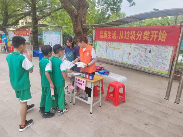 在活動中,工作人員利用宣傳小冊子,詳細講解垃圾的四種分類(可回收物、有害垃圾、廚余垃圾、其他垃圾)以及常見垃圾的分類歸屬,如紙張、塑料瓶屬于可回收物;電池、過期藥品屬于有害垃圾;剩菜剩飯、果皮果核屬于廚余垃圾;陶瓷碎片、用過的紙巾屬于其他垃圾等。通過舉例和互動問答的方式,加深小學(xué)生對垃圾分類知識的理解。