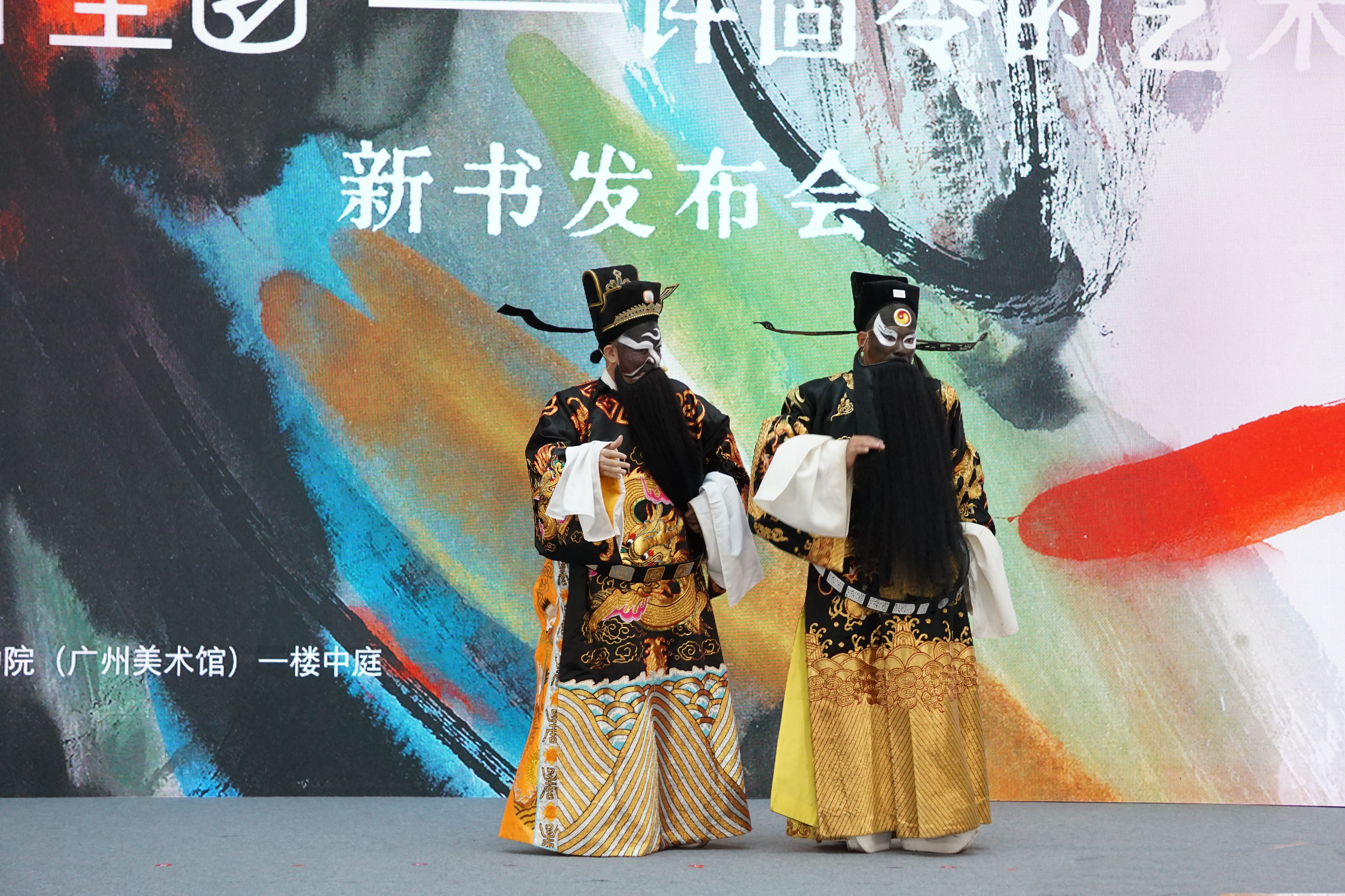 眾所周知,許固令的家鄉(xiāng)廣東汕尾是戲劇之鄉(xiāng),當(dāng)?shù)叵∮械膽蚯绨鬃謶颉⑽髑貞?、正字戲等,從小就給了許固令很大的熏陶和影響。為了讓更多觀眾能夠直觀看到許固令藝術(shù)表達(dá)的源泉之一,活動特意請來廣東省海豐縣白字戲藝術(shù)傳承中心主任、國家級非物質(zhì)文化遺產(chǎn)項目(白字戲)代表性傳承人吳佩錦和演員余榮貴,現(xiàn)場演繹白字戲《秦香蓮之勸陳》中包拯勸說陳世美的選段,同時邀請廣州紅豆粵劇團(tuán)的李霆輝演繹粵劇《包拯還硯》選段。兩位包公同臺演出,展現(xiàn)出各自劇種的魅力,讓觀眾感到耳目一新,同時也更加立體地映襯出許固令藝術(shù)中的傳統(tǒng)元素——藝術(shù)家通過畫筆將包公剛直不阿的精神凝聚在紙上,從而描繪出“凈角”的獨(dú)特魅力。