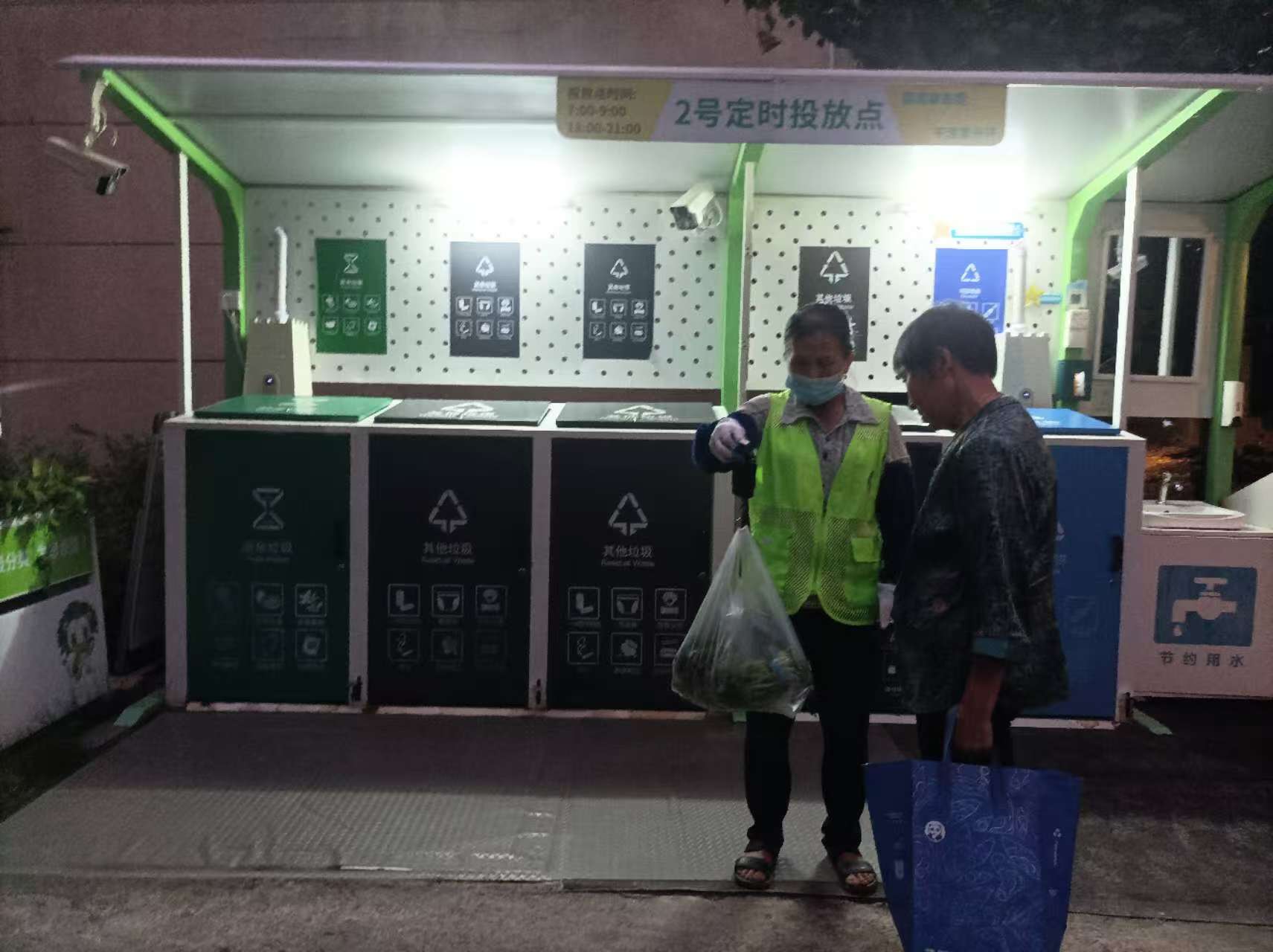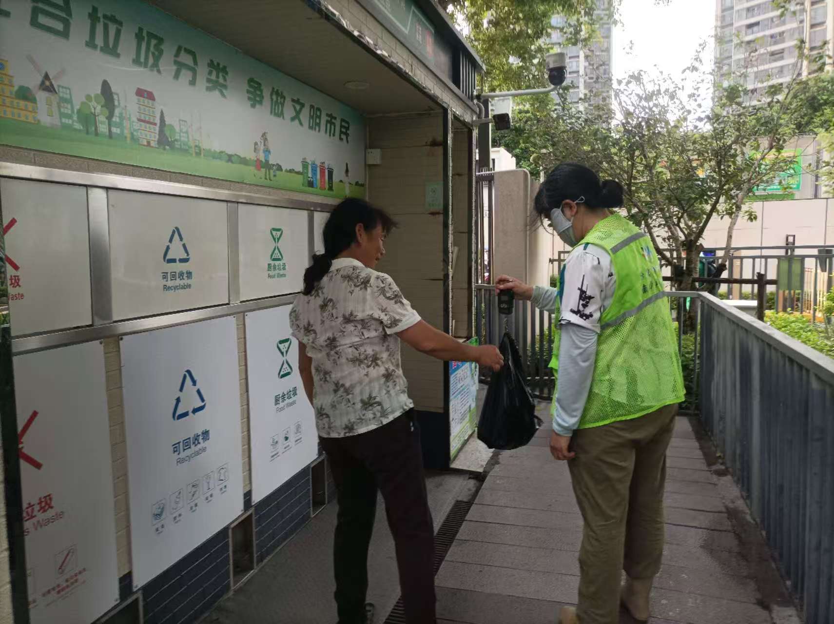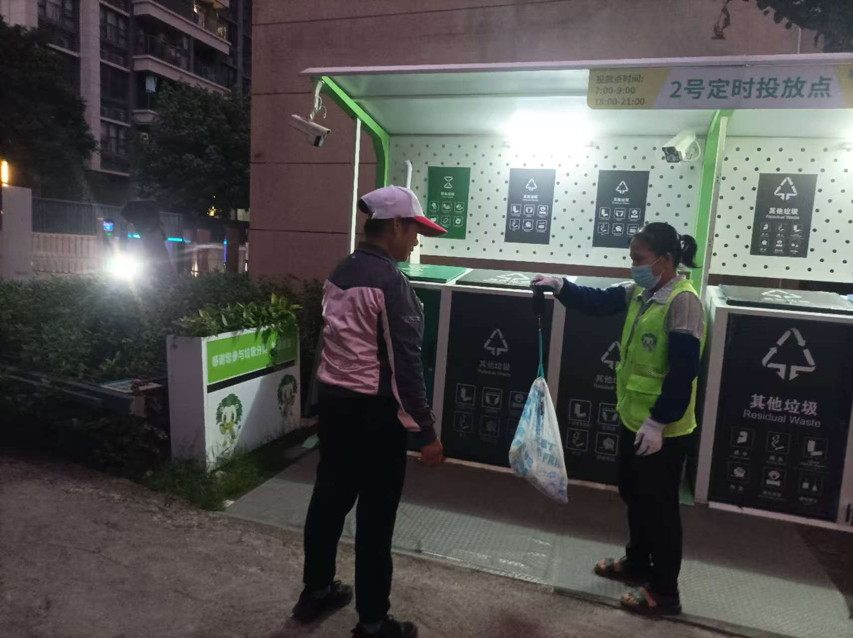 投放點開放時段,志愿者在垃圾分類投放點現(xiàn)場對分好類的廚余垃圾稱重,并記錄數(shù)據(jù),對分類準確、純凈度高的家庭給予禮品獎勵。針對混投、錯投現(xiàn)象,志愿者當(dāng)場糾正并講解分類標準,確?!耙淮环Q、一袋一改”。