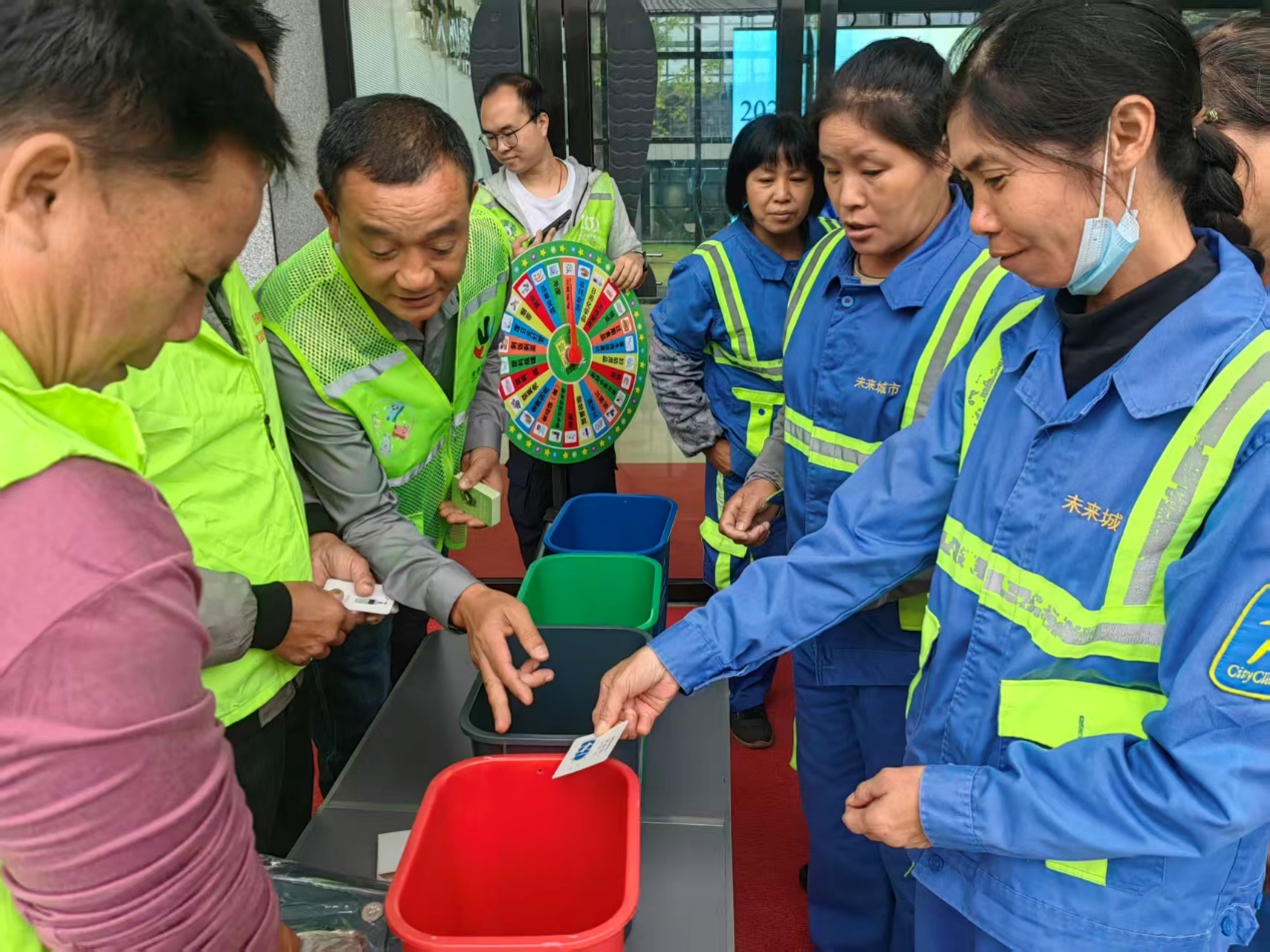 隨后,在“低碳講堂”環(huán)節(jié)中,打破了傳統(tǒng)單向宣傳的束縛,引入了系統(tǒng)化、體驗式的宣傳模式。志愿講師通過圖文并茂的PPT演示,顯著增強了科普的實效性和感染力。他們向環(huán)衛(wèi)工人們詳細(xì)解讀了可回收物、有害垃圾、廚余垃圾及其他垃圾的分類標(biāo)準(zhǔn)與投放要求,有效助力環(huán)衛(wèi)工人構(gòu)建起清晰、準(zhǔn)確的分類知識體系,使環(huán)保知識深入人心。