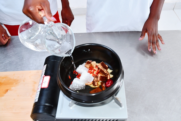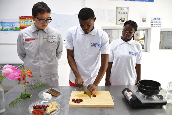 安哥拉員工喬治饒有興致地拿起生姜、紅棗、紅糖等材料,仔細(xì)端詳,感慨道:“用生姜來制作茶飲,胃里暖暖的,真是既新奇又有趣。”