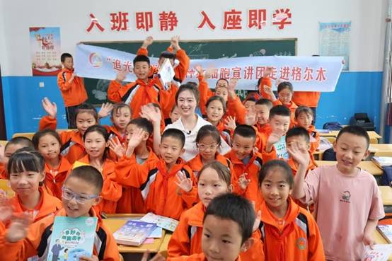 溫州醫(yī)科大學(xué)藥學(xué)院“追光”科學(xué)家精神紅細(xì)胞宣講員在青海格爾木小學(xué)宣講生長(zhǎng)因子故事。