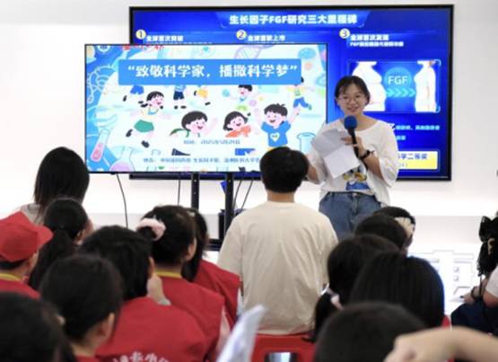 成立大中小跨學(xué)段“追光”宣講團(tuán),讓科學(xué)聲音覆蓋不同年齡層;建立FGF·西望書舟科普?qǐng)D書驛站,為鄉(xiāng)村學(xué)校送去千余冊(cè)生命科學(xué)書籍;定制“生物醫(yī)藥科普宣傳包”,將實(shí)驗(yàn)工具、科普手冊(cè)打包送到孩子手中……