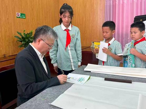 李校堃院士在富平蓮湖學(xué)校向?qū)W生代表簽名贈(zèng)送科普書籍。