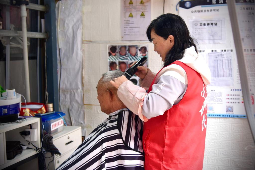 ??10月28日,昆明市五里多農(nóng)博廣場的便民理發(fā)店內(nèi),一位老人在理發(fā)。新華社記者王賢思 攝