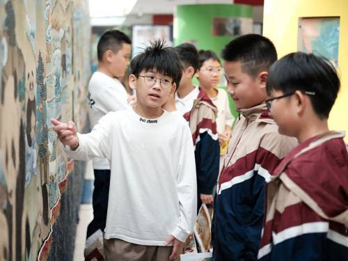 小朋友們?cè)谔瓶ㄕ故緟^(qū)討論。圖源:溫度新聞