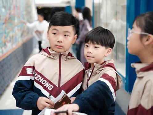 來自永嘉慧中公學(xué)小學(xué)部五(4)班的20多位同學(xué),也在班主任李蒙潔的帶領(lǐng)下前來參觀唐卡長(zhǎng)卷。同學(xué)們拿著班級(jí)自制的研學(xué)手冊(cè),分組在唐卡展示區(qū)進(jìn)行各自的“探索”,完成任務(wù)。李老師表示,得知唐卡長(zhǎng)卷要來溫州的消息后,就打算把參觀活動(dòng)當(dāng)成一次校外實(shí)踐課來開展。這是一次讓孩子們沉浸式體驗(yàn)非遺的非常好的機(jī)會(huì)。