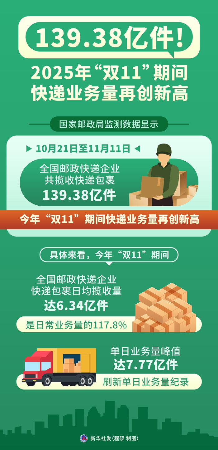 139.38億件!2025年“雙11”期間快遞業(yè)務(wù)量再創(chuàng)新高