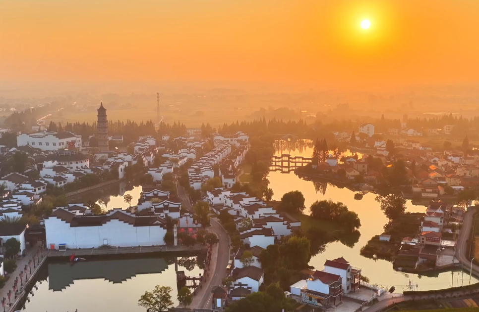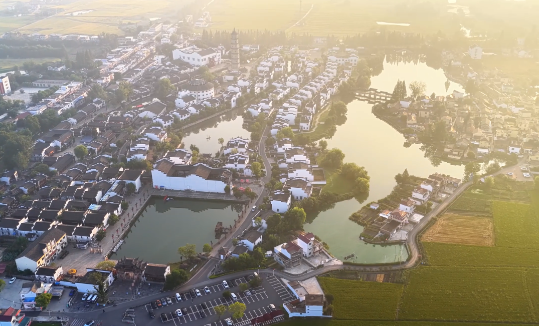 秋日清晨,位于安徽省銅陵市的犁橋水鎮(zhèn)在晨霧中蘇醒。放眼望去,白墻黛瓦的徽派民居錯(cuò)落有致,與湖畔倒影、街旁的金色稻田共同構(gòu)成一幅和諧的江南秋景圖。