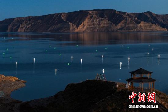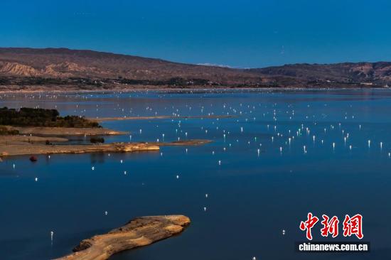 青海龍羊峽庫區(qū)九曲里漁燈璀璨