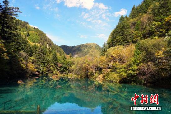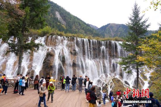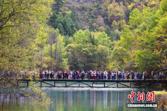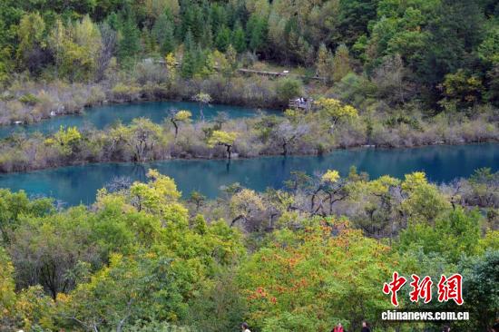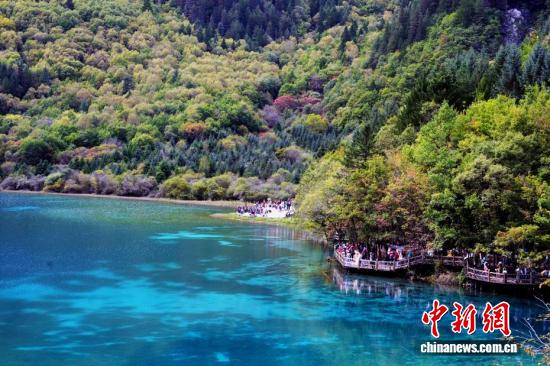 10月13日,世界自然遺產(chǎn)地九寨溝景區(qū)秋景如畫(huà),吸引眾多游客觀光游玩。圖為犀牛海風(fēng)光。中新社記者 安源 攝
