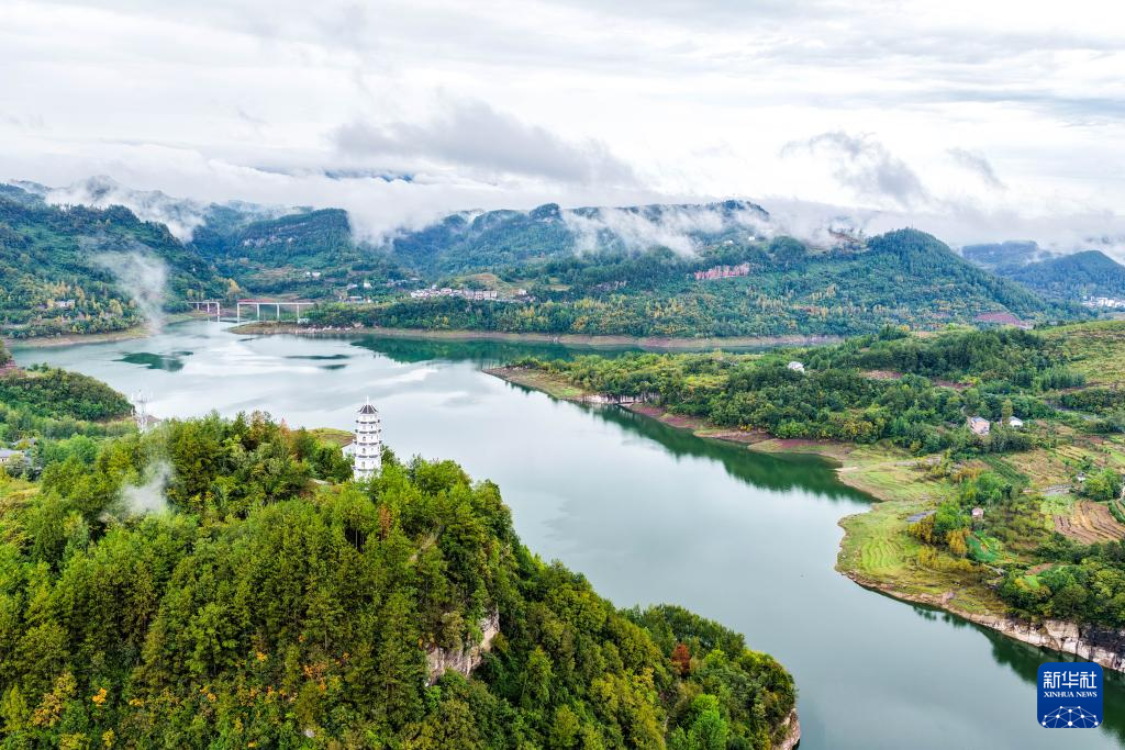 這是10月15日拍攝的石柱縣橋頭鎮(zhèn)景色(無人機照片)。