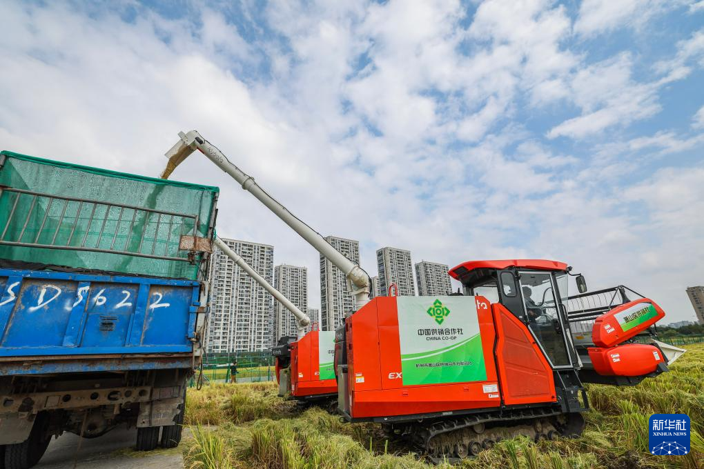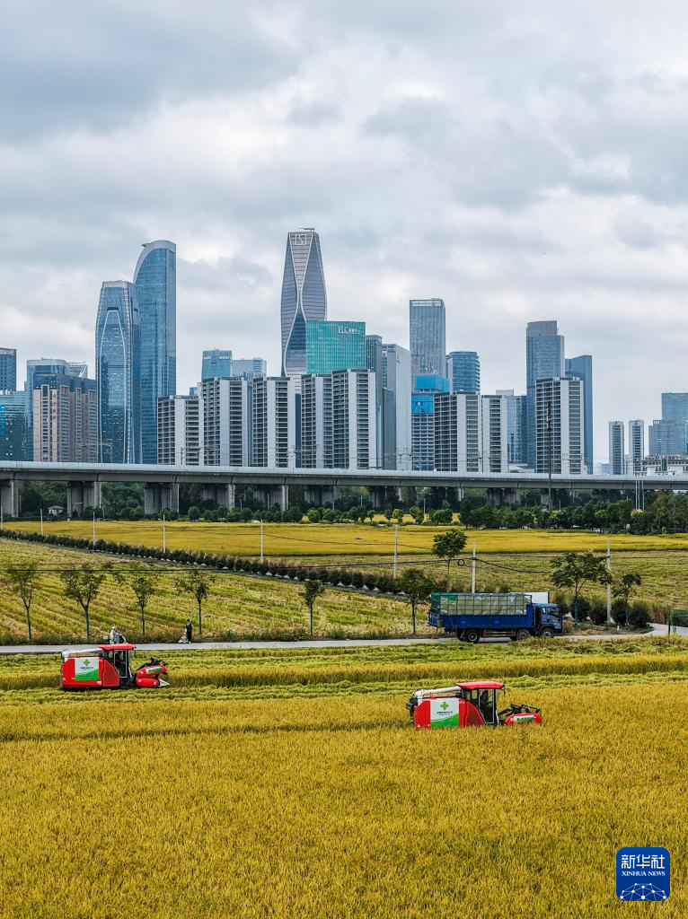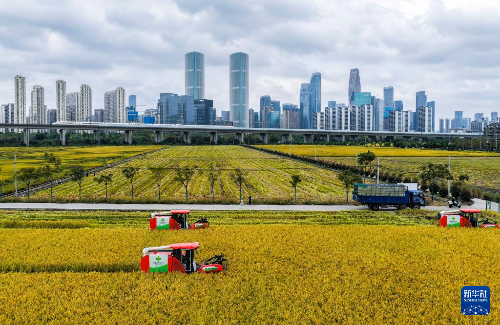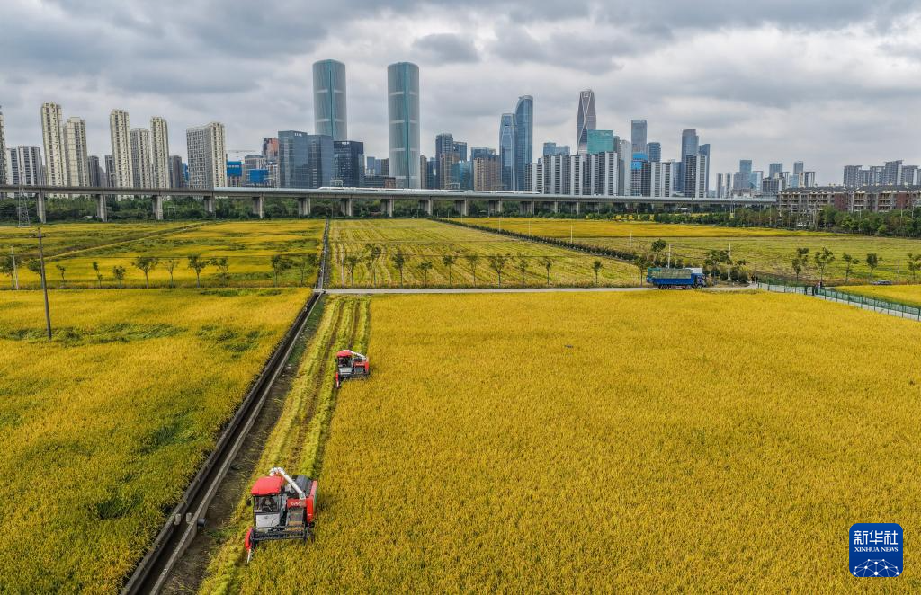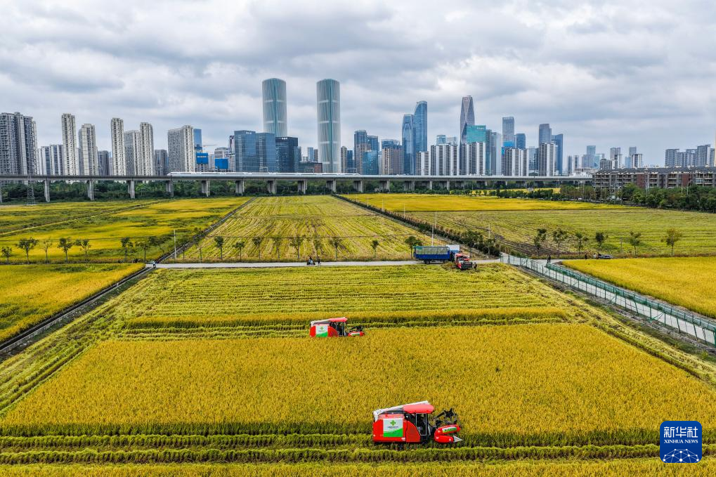 金秋時(shí)節(jié),位于浙江杭州蕭山區(qū)世紀(jì)田園糧食功能區(qū)的3000多畝水稻迎來豐收,金黃的稻田、飛馳而過的高鐵列車和遠(yuǎn)處的城市天際線構(gòu)成了獨(dú)特的城市田園畫卷。