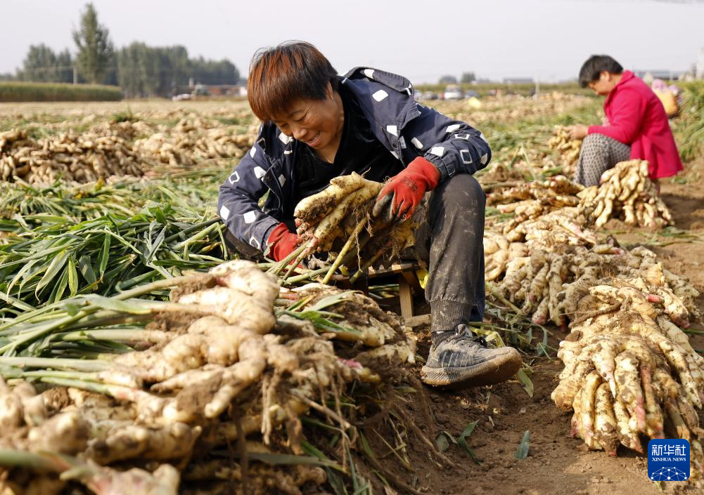 10月26日,河北省唐山市豐南區(qū)大新莊鎮(zhèn)的農(nóng)民在田間收獲生姜。