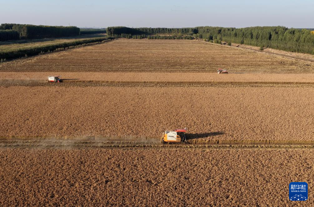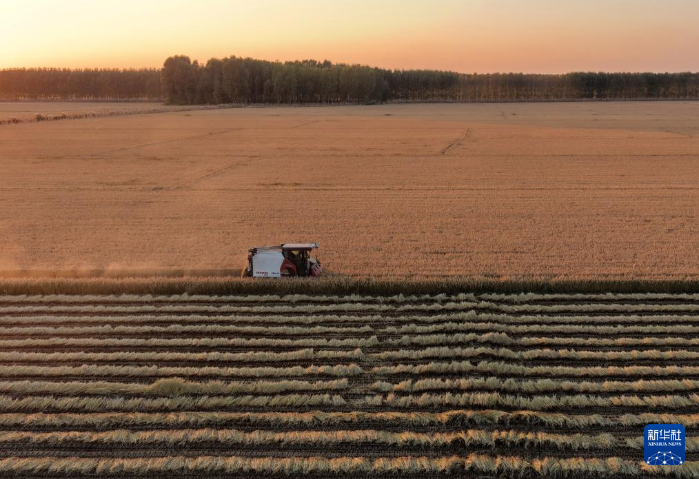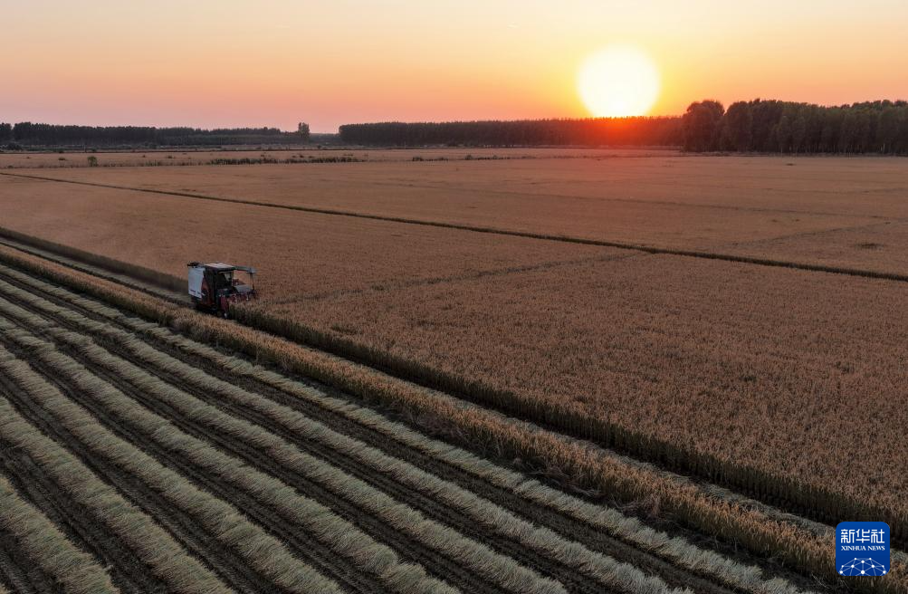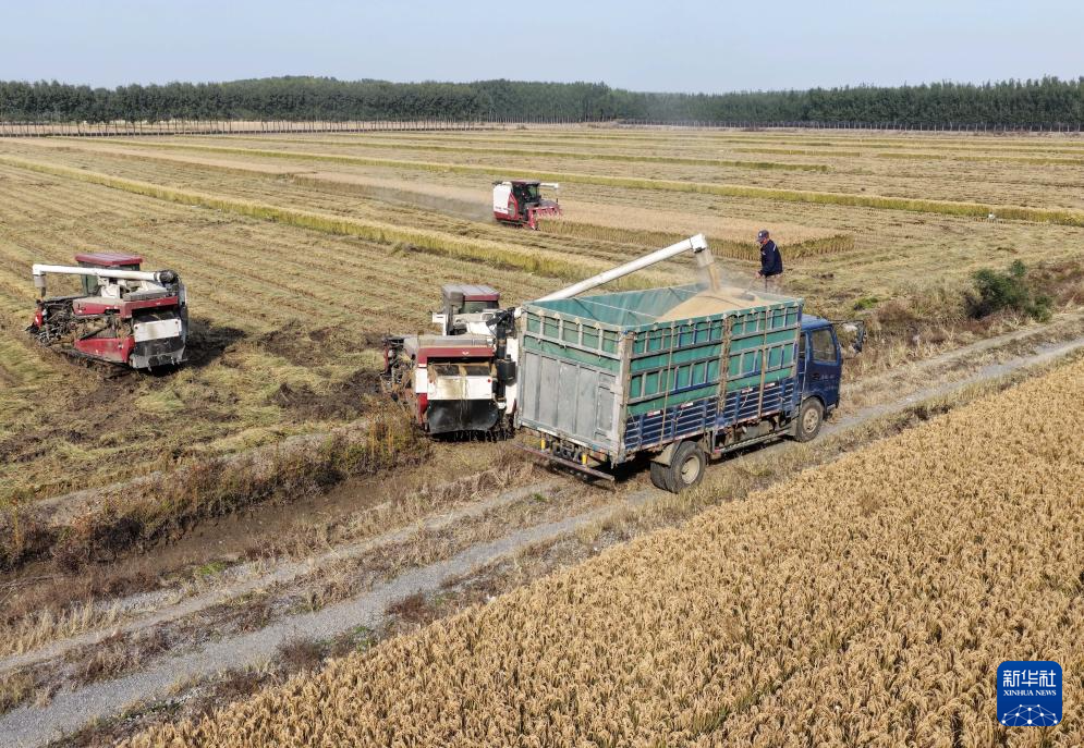 近日,河北省唐山市的水稻迎來收獲季,當(dāng)?shù)剞r(nóng)民搶抓晴好天氣收獲水稻。