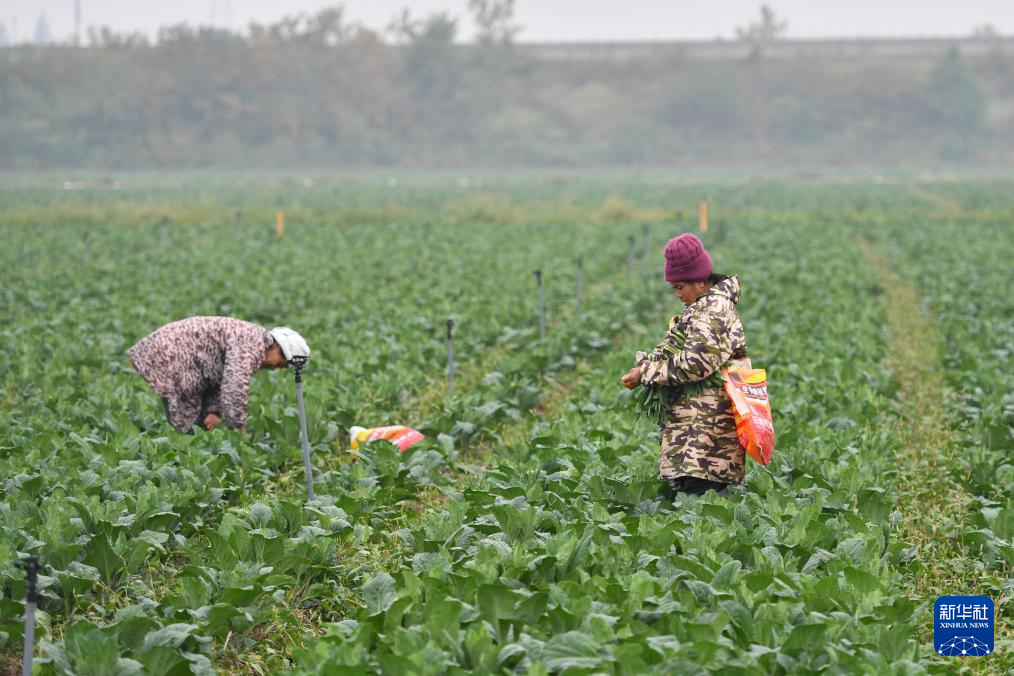 10月30日,菜農(nóng)在沅江市草尾鎮(zhèn)樂園村蔬菜田里采收蔬菜。