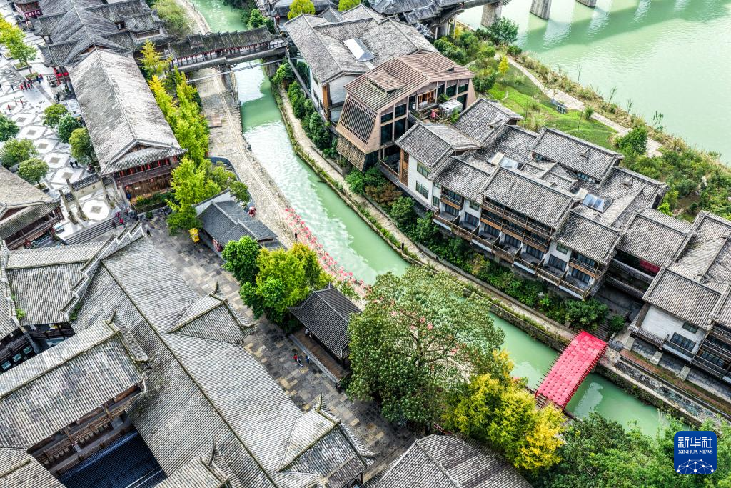 這是10月30日拍攝的濯水古鎮(zhèn)景色(無人機照片)。