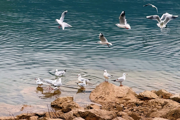 冬日的金沙江霧氣繚繞,碧水蕩漾,一群遠(yuǎn)道而來的紅嘴鷗正上演著靈動(dòng)的“水上芭蕾”。