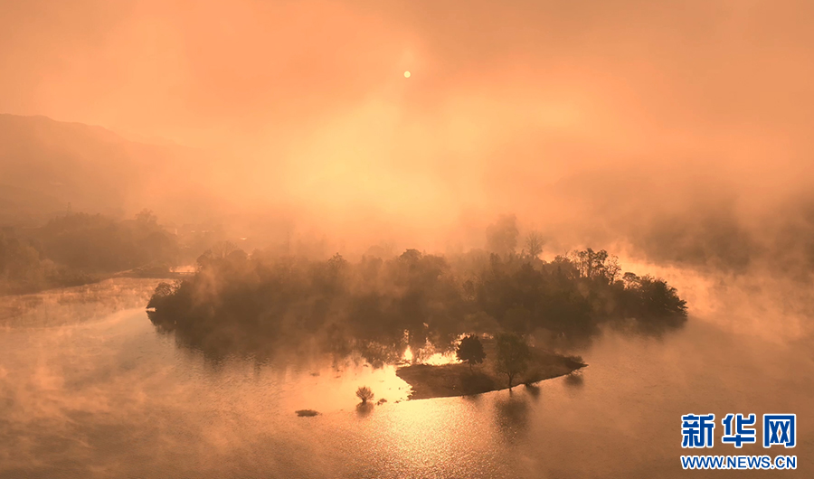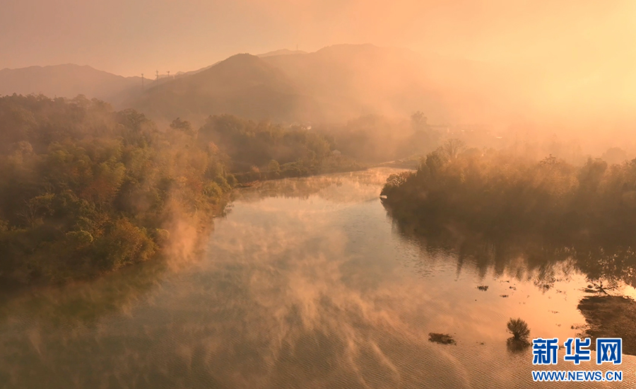 深秋時(shí)節(jié),安徽省池州市石臺縣秋浦河晨霧氤氳,如輕紗繚繞。天邊霞光漸染云層,與朦朧晨霧交融輝映,宛若一幅天然繪就的水墨長卷。(王帆 徐麗紅)