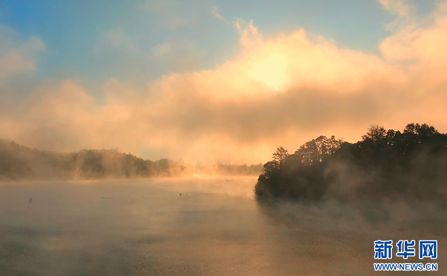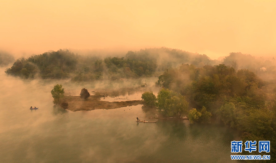 安徽石臺:晨霧籠秋浦 霞光染水墨