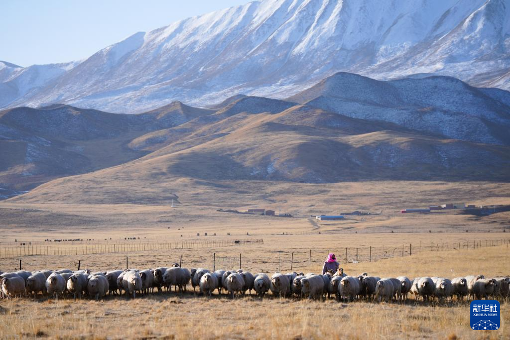 11月10日,仟戶牧場(chǎng)的放牧員在青海省海北藏族自治州祁連縣放牧。