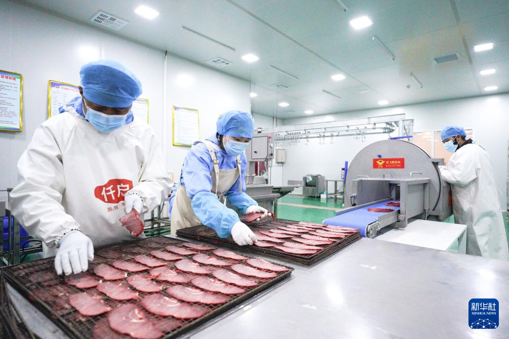11月11日,工人在仟戶牧場(chǎng)的加工車間制作零食產(chǎn)品。