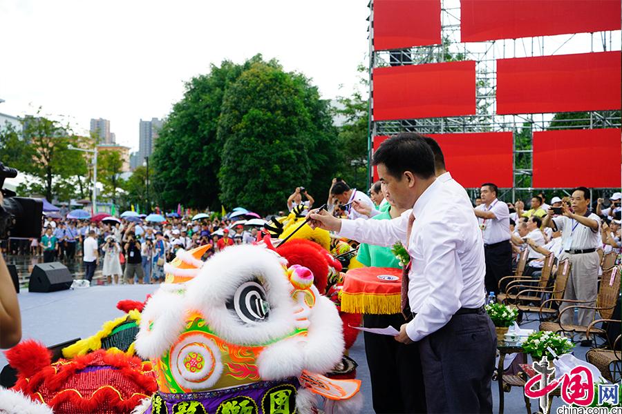 千人舞獅表演前,領(lǐng)導(dǎo)嘉賓為瑞獅進(jìn)行點(diǎn)睛醒獅。 中國網(wǎng) 李康 攝