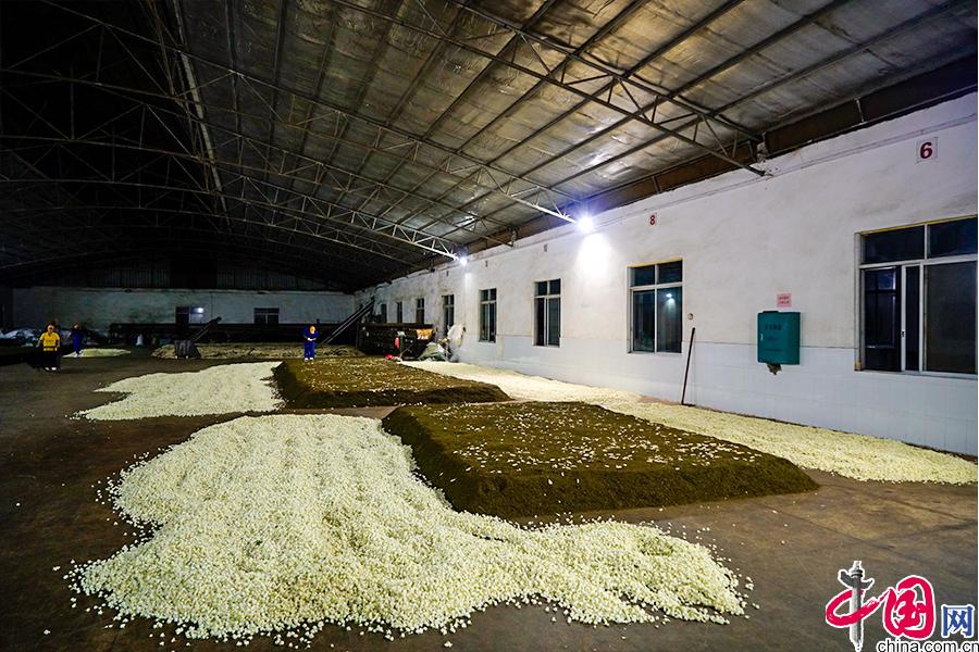 而后要再把茉莉花和茶葉分開,茶葉上機(jī)氣干燥,這為“一窨”。一般來說,茉莉花茶需要六窨到十二窨不等。 中國網(wǎng) 李康 攝