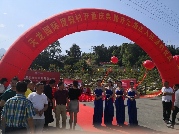初夏的大別山藍天白云,青山秀水,景色宜人。5月24日上午,記者一行沿著霍山國家級旅游風(fēng)景道的一路山水畫廊,來到了坐落于素有“中國天然氧吧、中國避暑勝地”美譽之稱的霍山縣太陽鄉(xiāng)。這里人聲鼎沸,歡歌如潮,天龍國際度假村開盤慶典暨開元酒店入駐簽約儀式,正在如期舉行。迄今為止,中國民營高星級連鎖酒店已正式落戶于霍山國家旅游風(fēng)景道,霍山旅游建設(shè)又新增了一張對外推廣的靚麗名片?;羯娇h政府相關(guān)部門領(lǐng)導(dǎo)到場祝賀。