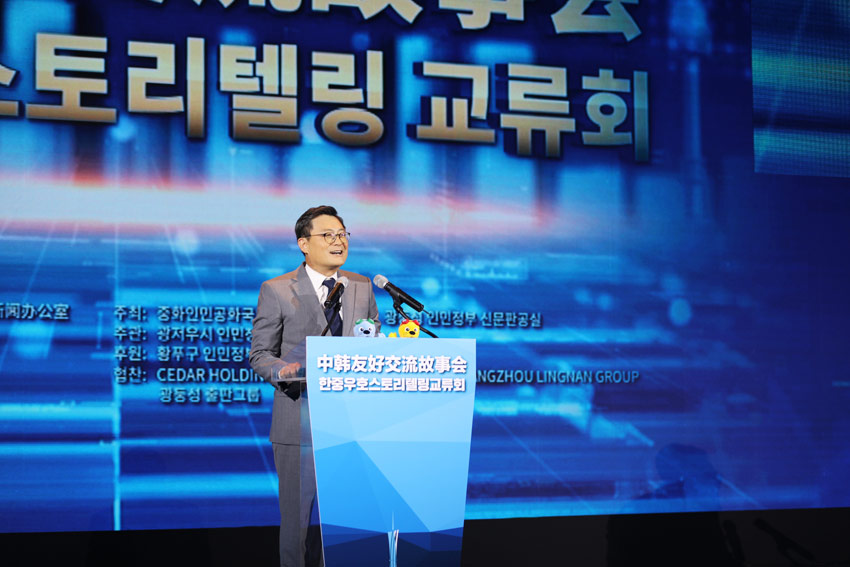 前韓國(guó)文化體育觀光局副部長(zhǎng)宋秀根講述他為何希望將中韓短片電影節(jié)帶到廣東(廣州市政府新聞辦公室 供圖)