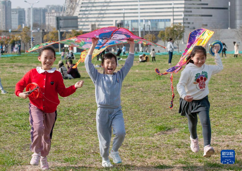 3月6日,小朋友在江蘇無錫蠡湖畔放風(fēng)箏。