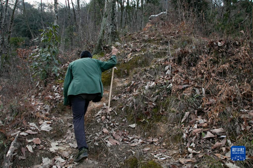 楊忠錄在大熊貓國家公園甘肅省片區(qū)裕河園區(qū)的密林中巡山(1月4日攝)。