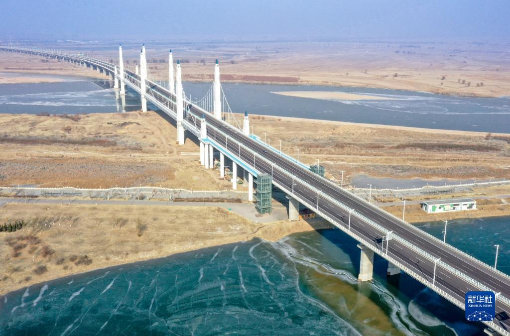 這是2023年1月2日拍攝的寧夏銀川市濱河黃河大橋(無(wú)人機(jī)照片)。