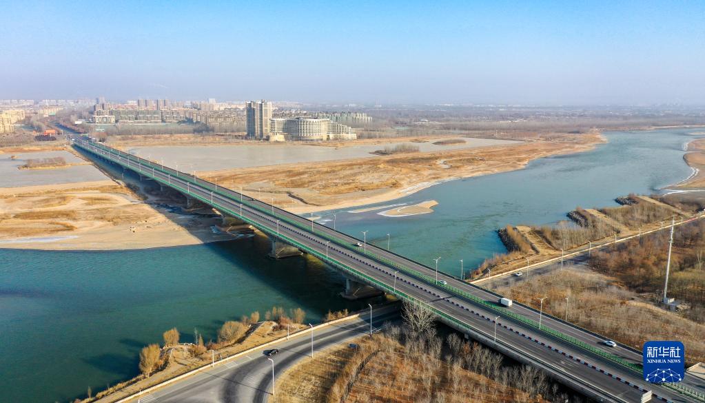 這是2022年12月29日拍攝的位于寧夏中衛(wèi)市境內的黃河景觀(無人機照片)。
