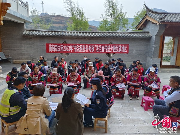 近期,云南省昆明市尋甸回族彝族自治縣倘甸鎮(zhèn)以普法強(qiáng)基補(bǔ)短板專項(xiàng)行動(dòng)為契機(jī),全面推進(jìn)普法走深走實(shí),組織普法隊(duì)伍走進(jìn)魯嘎彝族村,以貼近群眾的方式開展“雙語普法”。