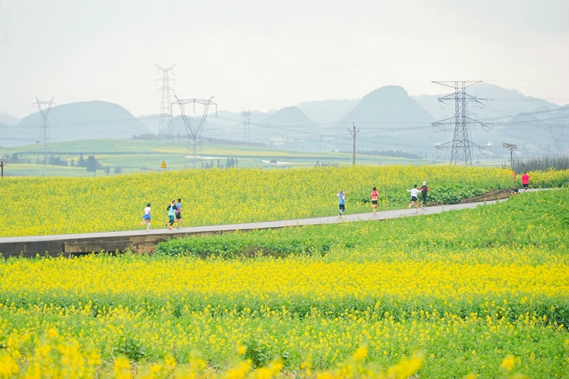 本次馬拉松途經(jīng)金雞峰叢、老尖山、獅子山等羅平多個(gè)經(jīng)典景觀,穿越花海、峰林、水色、霧景,形成了一條自然生態(tài)與現(xiàn)代人文和諧交融的最美花海賽道,被譽(yù)為“跑進(jìn)春天的第一場(chǎng)馬拉松”。
