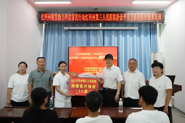 在金水河鎮(zhèn)衛(wèi)生院門口的義診現(xiàn)場,村民們早早便前來等候。紅河州第三人民醫(yī)院的12名醫(yī)療專家迅速投入工作,他們耐心詢問病史、細致查體,借助便攜設(shè)備完成輔助檢查,針對腫瘤防治等各類問題為村民逐一解答。針對邊境地區(qū)高發(fā)的關(guān)節(jié)勞損、糖尿病、婦科疾病等常見病癥,專家們不僅進行現(xiàn)場診療,還積極開展健康宣教活動,發(fā)放科普資料,幫助群眾樹立“早預(yù)防、早發(fā)現(xiàn)、早治療”的健康理念。村民曹女士感慨道:“我胃病多年,今天遇到相關(guān)專家,給了我很好的建議,還開了處方?!贝舜瘟x診涵蓋腫瘤診療、DR影像診斷、婦產(chǎn)科等多個領(lǐng)域,活動現(xiàn)場的“防癌篩查車”格外引人注目,眾多當(dāng)?shù)貗D女紛紛咨詢并上車進行乳腺篩查。此次義診活動中,共接待群眾187人次,發(fā)放健康資料360余份,并向金水河鎮(zhèn)所轄的村衛(wèi)生室捐贈了17套醫(yī)療設(shè)備。義診結(jié)束后,5名專家還為當(dāng)?shù)蒯t(yī)護人員、鄉(xiāng)村醫(yī)生開展了放射影像、糖尿病管理、肺結(jié)節(jié)診斷等方面的專題授課,聚焦診療難點與救治技巧,助力提升基層醫(yī)護專業(yè)能力?!拔覀儾粌H帶技術(shù),更要留技術(shù)?!便y發(fā)專家、州三院腫瘤放療科副主任醫(yī)師常潤生表示,將通過“手把手”教學(xué)提升基層醫(yī)療水平。