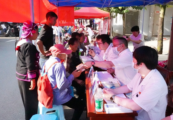 “雞血藤扦插后,不生根,成活率只有10%。”云南省紅河州金平縣金水河鎮(zhèn)大風(fēng)梁瑤藥基地負責(zé)人毛先生對著“紅河銀發(fā)”產(chǎn)業(yè)發(fā)展幫扶隊隊長胡云急切地詢問。在金平縣金水河鎮(zhèn)的集市上,女士們排隊走上紅河州第三人民醫(yī)院防癌檢查車做乳腺病篩查。與此同時,金水河鎮(zhèn)政府會議室內(nèi),工作人員正在聆聽州外辦退休干部吳洪斌律師主講的法律專題宣講。