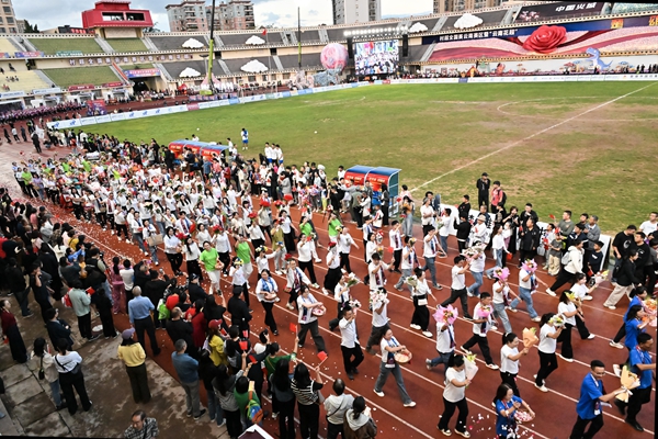 9月27日晚,云南楚雄州體育場(chǎng)內(nèi)燈火如晝、人聲鼎沸,村超全國賽暨云南鮮花足球超級(jí)聯(lián)賽(以下簡(jiǎn)稱“楚雄花超”)在此圓滿收官。這場(chǎng)以“鮮花為媒,足球?yàn)榻椤钡奶厣愂拢?月12日啟幕以來,歷時(shí)78天匯聚71支隊(duì)伍、1661名運(yùn)動(dòng)員,216場(chǎng)賽事不僅點(diǎn)燃云嶺大地的全民健身熱情,更以體育為紐帶串聯(lián)起文化傳承、群眾參與與產(chǎn)業(yè)發(fā)展的多重活力,成為基層踐行“體育搭臺(tái)、文化鑄魂、產(chǎn)業(yè)富民”的生動(dòng)樣本。