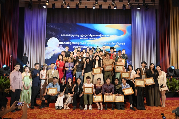 晚會上,柬埔寨國家新聞部還為云南廣播電視臺發(fā)起的南亞東南亞網(wǎng)紅聯(lián)盟新媒體達(dá)人授予“柬埔寨旅游推介官”稱號。由云南廣播電視臺發(fā)起的南亞東南亞網(wǎng)紅聯(lián)盟,組織了多位中國千萬級粉絲內(nèi)容創(chuàng)作者,組成“彩云追月?睦鄰情深”中柬中秋交流活動網(wǎng)紅報道團(tuán)赴柬,開展聯(lián)合共創(chuàng),共推“游云南看吳哥”文旅IP,兩國攜手共同打造文旅品牌,讓文化交流成為中柬合作的有力支撐。