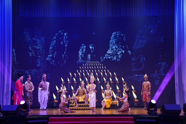 晚會舞臺上,中柬文化瑰寶交相輝映。柬埔寨帕花黛薇舞蹈學(xué)院帶來的民間舞蹈《椰殼舞》《仙女舞》,展現(xiàn)了深厚的柬埔寨傳統(tǒng)文化;中國舞蹈家演繹的古典舞《迦陵頻伽》,融入敦煌壁畫元素,以柔美舞姿再現(xiàn)中華文化中的“妙音鳥”形象;云南藝術(shù)家獻(xiàn)上充滿民族風(fēng)情的歌舞,彝族《踩著云》的旋轉(zhuǎn)舞步、佤族《月亮升起來》的原生態(tài)歌聲,與柬埔寨傳統(tǒng)藝術(shù)同臺綻放,文明交流互鑒的魅力引人入勝。