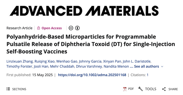 此外,她參與了另一項(xiàng)面向公共健康挑戰(zhàn)的研究:開(kāi)發(fā)一種“自助加強(qiáng)”型疫苗平臺(tái),利用聚酸酐材料(polyanhydrides)構(gòu)建可編程脈沖釋放微粒,并借助人工智能技術(shù)篩選材料組合。通過(guò)單次注射即可實(shí)現(xiàn)多劑次疫苗的效果。這一成果發(fā)表于《Advanced Materials》。