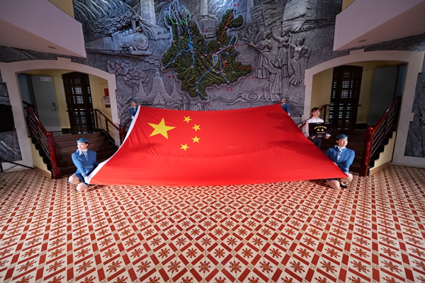 國慶首日 一面特殊的國旗在云南鐵路博物館展出