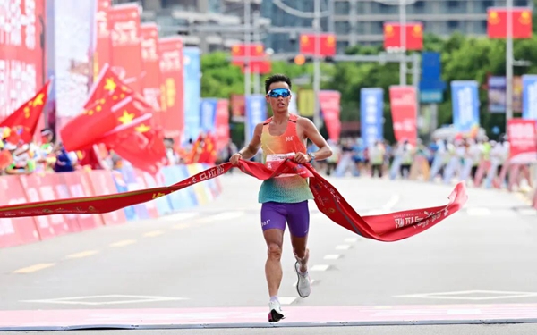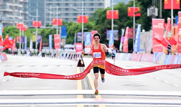 (半程馬拉松男子組冠軍蘇逸沖線瞬間)
