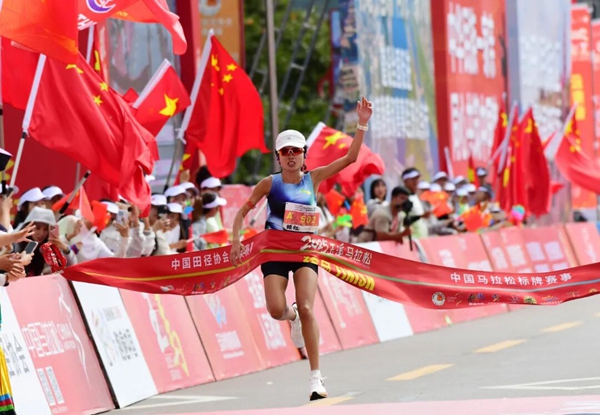 (半程馬拉松女子組冠軍蔣洪美沖線瞬間)