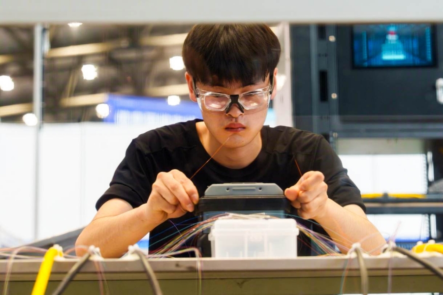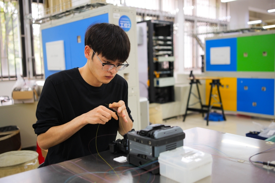 “在此次比賽中,最為緊張的時(shí)刻莫過(guò)于整條光纖鏈路鋪設(shè)完畢后進(jìn)行的福祿克認(rèn)證測(cè)試。與平日訓(xùn)練不同的是,此次使用了新的熔接機(jī),無(wú)法完全確保能否滿(mǎn)足認(rèn)證測(cè)試的標(biāo)準(zhǔn)。在接通測(cè)試儀的那一刻,內(nèi)心依然感到忐忑不安?!笔Y忠何坦言,國(guó)賽的舞臺(tái)上他能及時(shí)調(diào)整心態(tài)尋求解決方案,這源于賽前漫長(zhǎng)的訓(xùn)練過(guò)程所積累的備賽經(jīng)驗(yàn)。