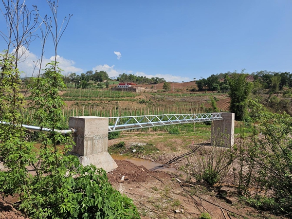 (平掌村高標(biāo)準(zhǔn)煙田建設(shè)項(xiàng)目管網(wǎng)過河懸架。羅兆明/攝)