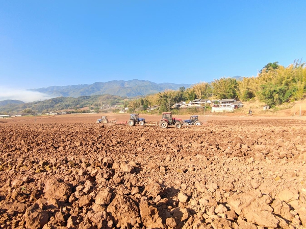 (平掌村高標(biāo)準(zhǔn)煙田建設(shè)項(xiàng)目農(nóng)機(jī)翻犁。周啟磊/攝)