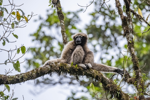 高黎貢白眉長臂猿世界種群數(shù)量不超過200只,主要分布在中國高黎貢山和緬甸北部山區(qū)。近年來,云南保山構(gòu)建“定猿、定群、定人”立體監(jiān)測網(wǎng)絡(luò),利用無人機、紅外相機、聲紋監(jiān)測、采樣分析等現(xiàn)代技術(shù),建立起包含個體特征、家域范圍、活動節(jié)律在內(nèi)的精細檔案,實現(xiàn)了由“粗放守護”向“智慧守護”的跨越。(仵猛、蔣蕾、保山市融媒體中心供稿)